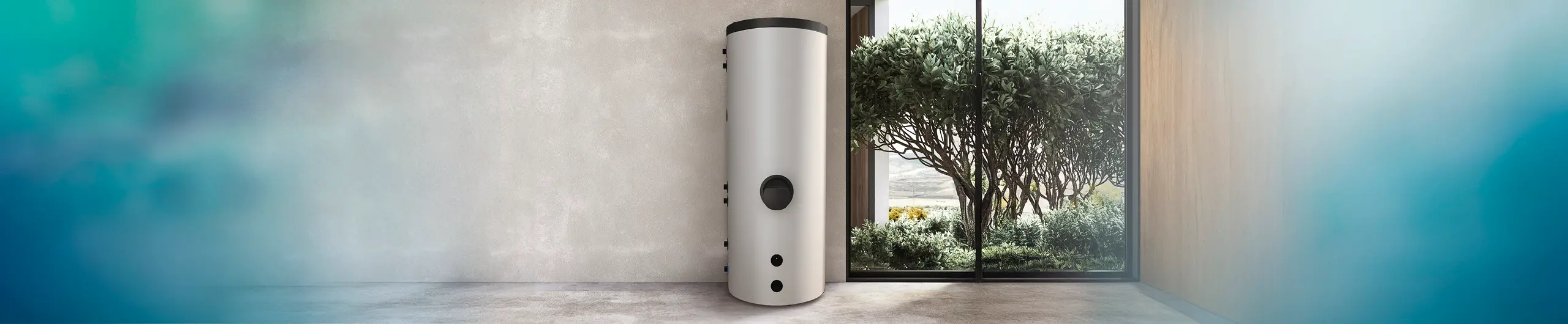 - Indirectly heated hot water storage tanks with large-surface heat exchangers