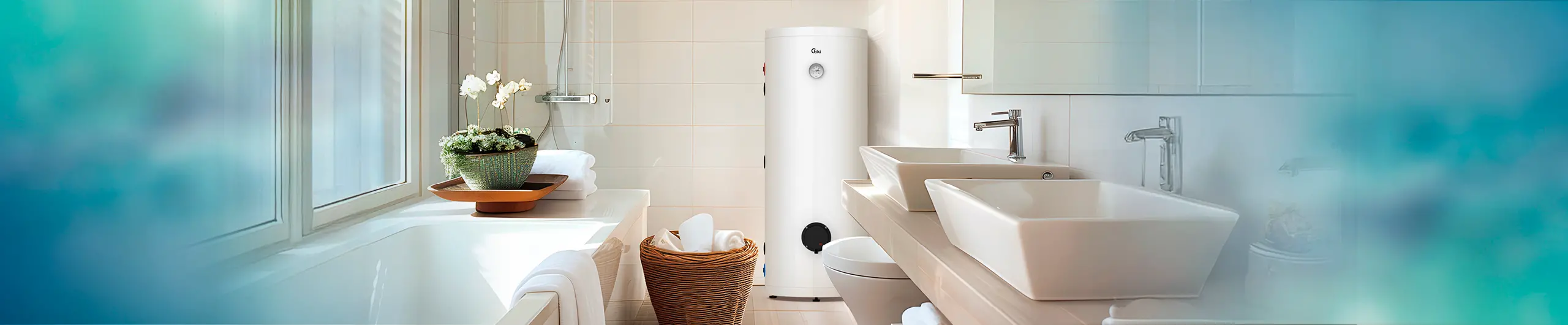 - Freestanding, indirectly heated hot water storage tanks with large-surface heat exchangers